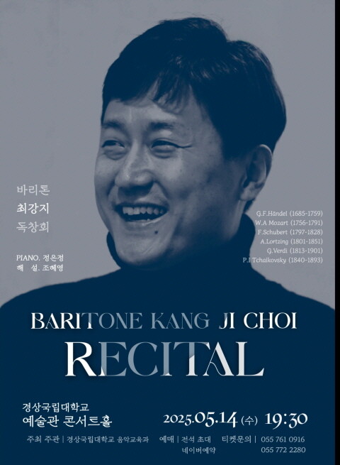 바리톤 최강지 교수는 이번 독창회 프로그램 1부에서 헨델의 오라토리오를 시작으로 슈베르트의 연가곡 '아름다운 물레방앗간 처녀'와 '겨울 나그네' 등 주옥같은 가곡을 선보인다.