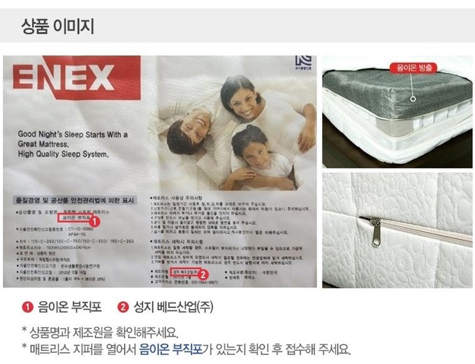 ㈜에넥스에서 판매한 매트리스 1종에서도 기준치를 초과한 라돈이 검출됐다. 해당 제품은 앨빈PU가죽 퀸침대 모델에 사용된 독립스프링매트리스Q(음이온)로, 2012년 8월에서 11월까지 244개가 판매됐다. 에넥스 역시 자발적 리콜을 결정했다.