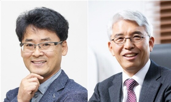 ▲ 왼쪽부터 김철환 경상국립대 교수와 이복진 전주페이퍼 이복진 대표 [경상국립대학교 제공] |