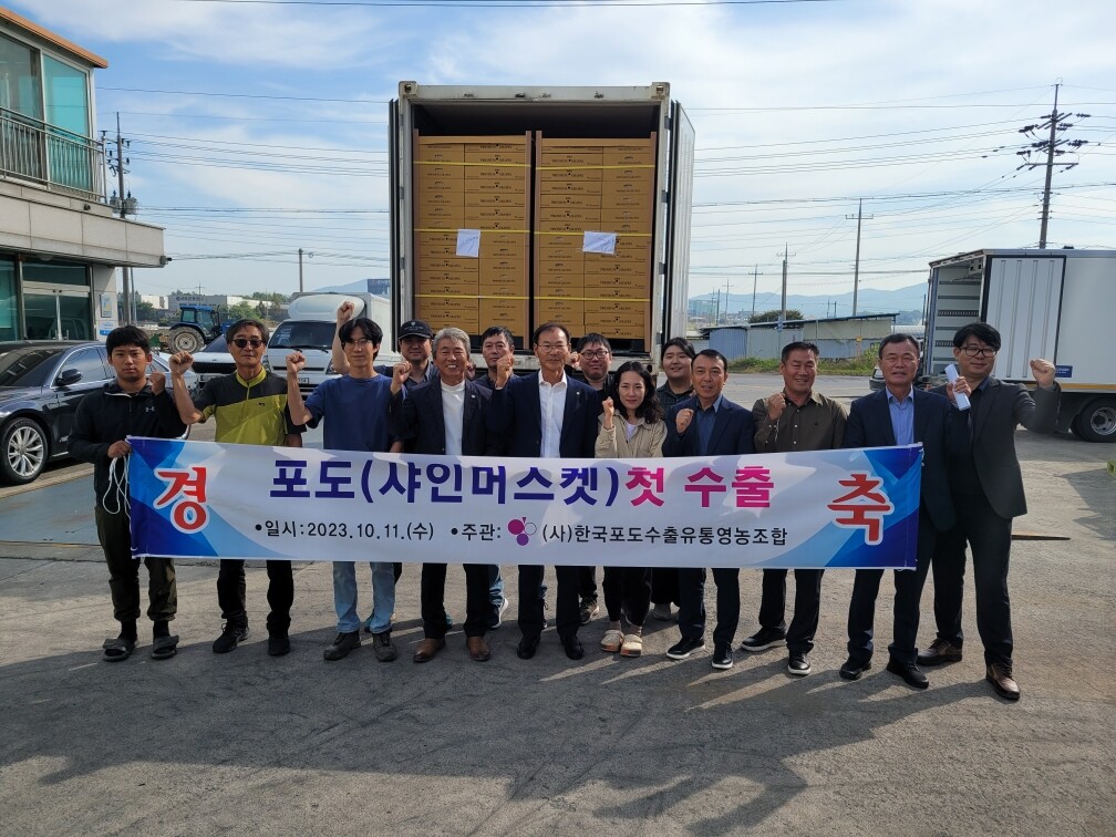 한국포도수출유통영농조합 주관으로 수출한 포도(샤인머스캣)는 천안시 청년창업농이 재배한 것으로, 수출량은 3t이며 금액으로는 6000만 원 상당이다.