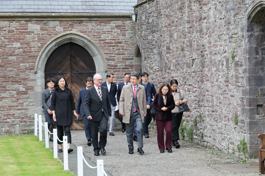 ▲포항시 대표단이 크라이스트 칼리지 브레콘 학교 투어를 하며 주요 시설들을 둘러보고 있다. [포항시 제공]