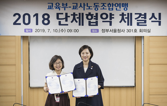 교육부와 교사노동조합연맹(교사노조연맹)이 교권 강화 및 처우 개선 등에 대한 단체협약 체결을 맺었다. 교육부가 교사들로 구성된 교원노조와 단체협약을 체결한 것은 17년 만이다.
