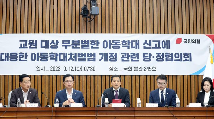 국민의힘과 정부는 12일 아동학대로 신고된 교원을 정당한 사유 없이 직위해제할 수 없도록 '직위해제 요건'을 강화하기로 했다.