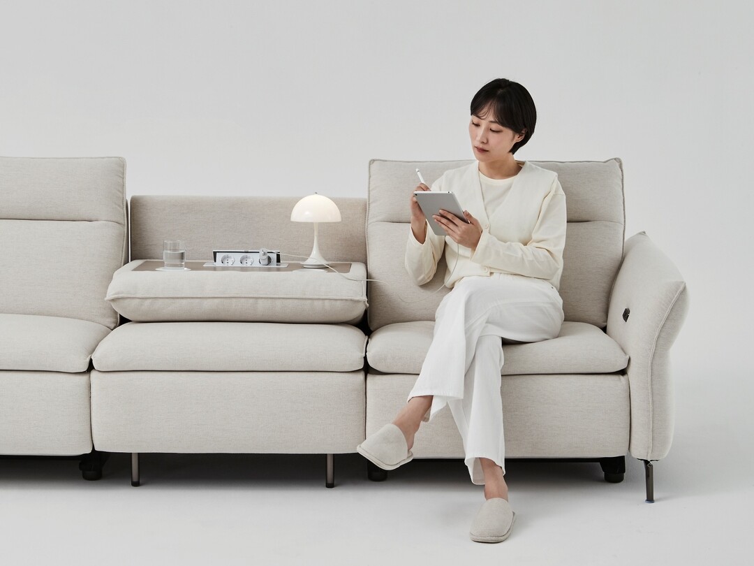 3인용, 4인용에 이어 이번에 새롭게 출시한 홈바형은 소파 가운데 모듈의 등받이를 접어 테이블처럼 활용할 수 있다. 두 명이 앉았을 때, 가운데 모듈에 간단한 먹을거리를 올려두고 함께 착석해 영화나 드라마 등을 시청할 수 있다. 양 옆 모듈은 리클라이너 기능이 적용돼 있어 더욱 편안한 자세로 휴식이 가능하다.
