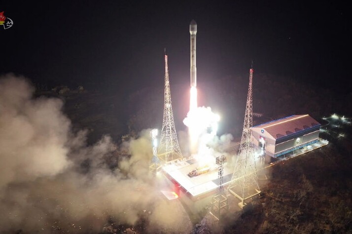 | ▲ 북한이 지난 21일 오후 10시 40여분 쯤 평안북도 철산군 서해위성발사장에서 신형위성운반로케트 '천리마-1'형에 정찰위성 '만리경-1'호를 탑재해 성공적으로 발사했다고 조선중앙TV가 22일 보도했다. [조선중앙TV 캡처] |