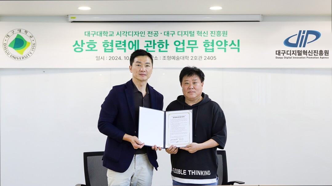 대구대 시각디자인전공(학과장 엄기서)이 대구디지털혁신진흥원과 디지털 콘텐츠 교육 강화 및 전문 인력양성을 위해 손잡았다.