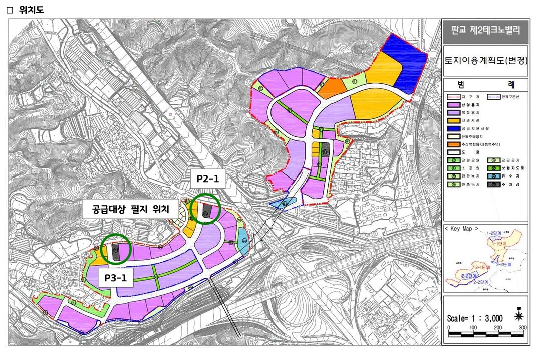 이번에 공급하는 토지는 지난 6월 공급(P1)하고 남은 판교 제2테크노밸리 내 잔여 주차장 용지 로 공급면적은 각각 P2 1725㎡, P3 1764.4㎡이다. 공급예정가격은 감정평가금액(약 65억) 기반 경쟁입찰 낙찰가이다.