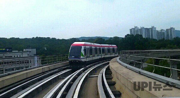 | ▲의정부시청 앞 고가선로를 운행 중인 의정부경전철[김칠호 기자] |