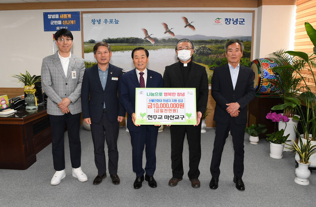 지난 25일 천주교 마산교구 창녕성당(신부 이상록)은 산불 사고 희생자 지원을 위해 성금 1000만 원을 창녕군에 기탁했다.