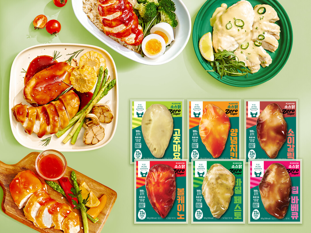 '피그인더가든 소스닭 제로슈거'는 당 걱정 없이 건강하고 든든하게 섭취할 수 있다고 한다. 중량이 시중 대다수 소스 닭가슴살 제품(100g)보다 약 40% 많은 140g으로 달걀 3개 분량의 단백질이 함유됐다. 100% 국내산 닭가슴살을 저온숙성해 촉촉하고 부드러운 식감을 살렸다는 설명이다.