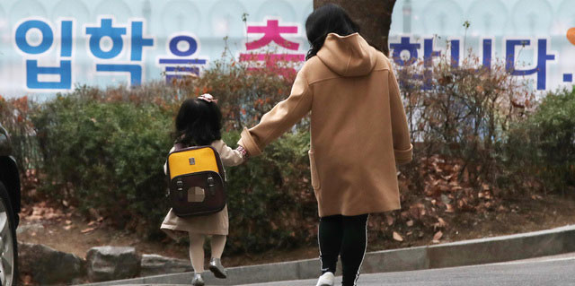 ▲ 한국유치원총연합회가 개학연기 투쟁을 철회한 후 대부분의 사립유치원이 정상개원한 5일 오전 서울 마포구 인근의 한 유치원에서 유치원생이 엄마 손을 잡고 등원하고 있다. [뉴시스]