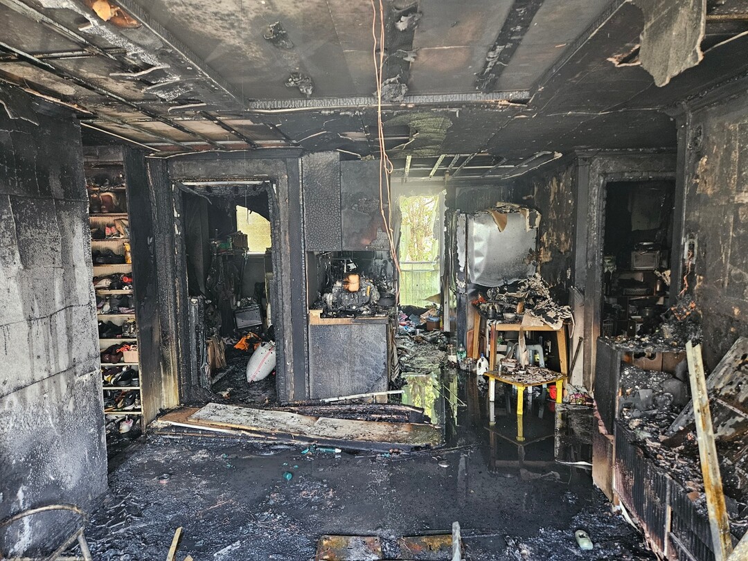 ▲ 4일 오전 울산 연암동 아파트 2층에서 발생한 화재 현장 [울산소방본부 제공]