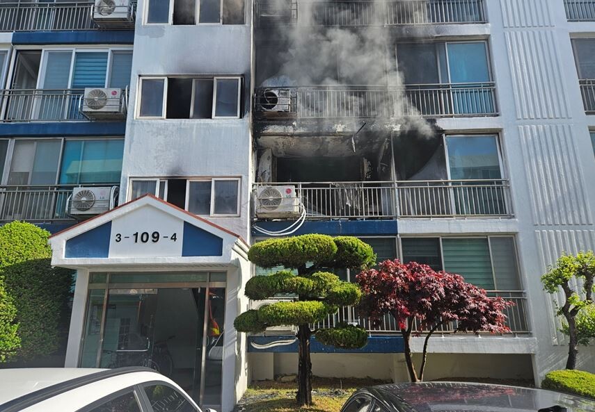 4일 오전 8시5분께 울산시 북구 두부곡4길(연암동) 5층짜리 아파트 2층에서 불이 났다.
