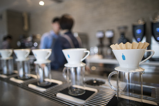 5일 서울 종로구 삼청동에서 미국 커피브랜드 블루보틀 국내 2호점인 서울 삼청점 개점행사를 하고 있다.