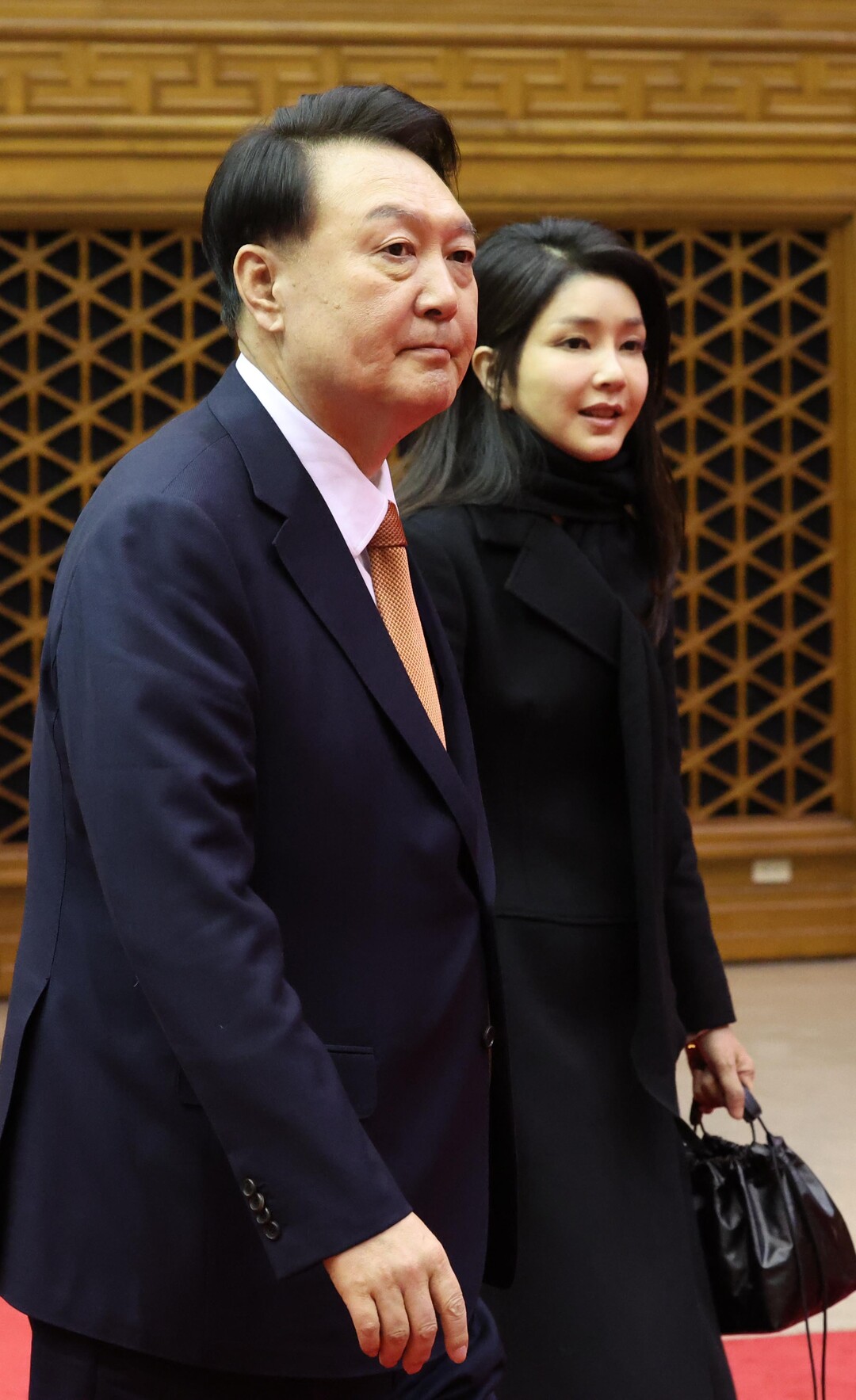 ▲ 윤석열 대통령과 부인 김건희 여사가 지난해 12월 15일 네덜란드 국빈 방문 일정을 마치고 성남 서울공항을 통해 귀국한 뒤 걸어 나오고 있다. 김 여사는 이후 공식 석상에서 모습을 감췄다. [뉴시스 제공] |