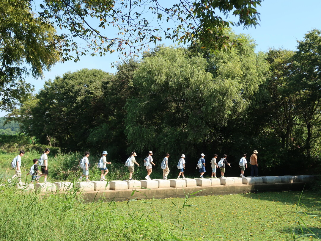 ▲ 경주어린이박물관학교 참가자들이 야외 답사 프로그램에 참여하고 있다. [국립경주박물관 제공]