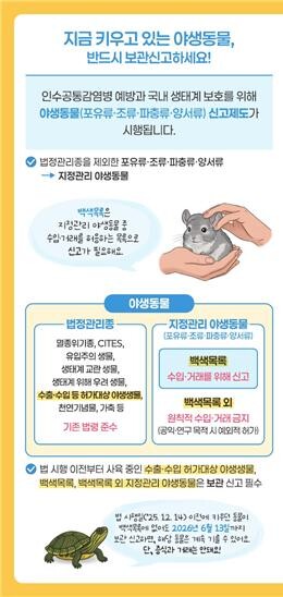 포항시 관계자는 "이번 제도는 생태계를 보호하고 시민 건강을 지키기 위한 최소한의 안전장치"라며 "계도기간이 운영되지만 사육 신고 마감일은 내년 6월로 더 빠른 만큼 희귀동물을 키우는 시민들은 기간 내에 꼭 신고 절차를 밟아야 한다"고 말했다.