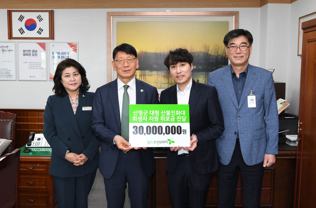 지난달 경남 산청 산불 진화 과정에서 숨진 창녕군청 소속 희생자(진화대원 3명, 공무원 1명)와 이재민을 돕기 위한 성금 행렬이 잇따르고 있다. 성금 모금은 30일까지 이어진다.