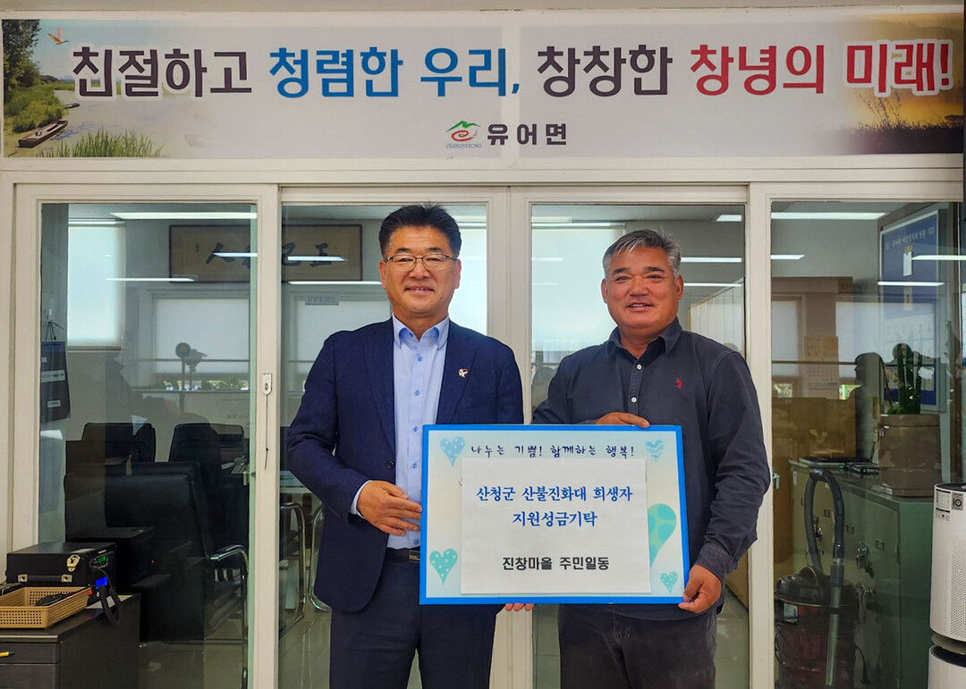 창녕군 유어면은 진창마을 주민일동(이장 양승훈)이 산청 산불사고 희생자 지원을 위해 성금 100만원을 기탁했다고 29일 밝혔다.