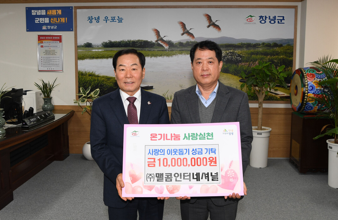 경남 창녕군은 지난달 31일 ㈜맬콤인터네셔널(대표 주겸목)에서 어려운 군민들을 위해 써달라며 성금 1000만 원을 기탁했다고 밝혔다.