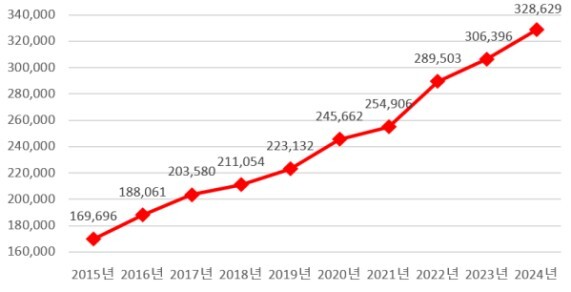 | ▲ 최근 10년간 의약품 연도별 생산실적 도표. [식약처 제공] |