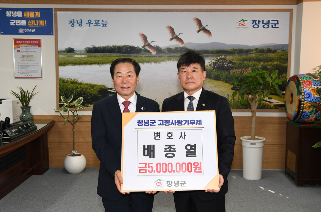 [창녕군 소식] 길곡면 명예면장 배종열 변호사 고향사랑기부 등