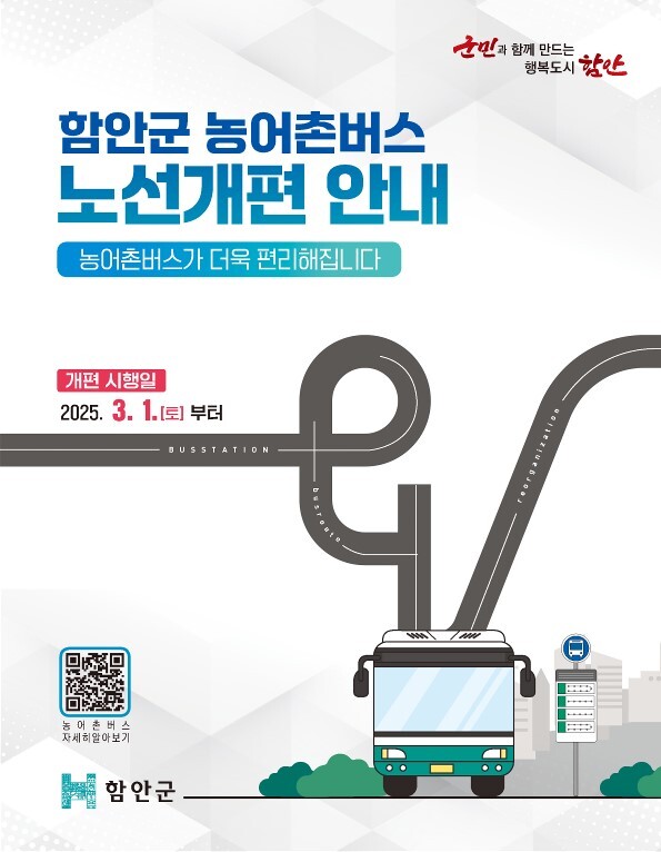 경남 함안군은 3월 1일부터 농어촌버스 노선 개편을 시행한다고 밝혔다.