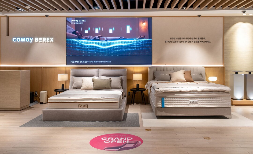 신규 매장에서는 코웨이의 슬립 및 힐링케어 브랜드 '비렉스(BEREX)'의 침대·안마의자·의료기기 제품군 외에도 정수기·공기청정기 등 다양한 제품을 비교하고 체험할 수 있다.