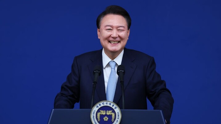 | ▲ 윤석열 대통령이 29일 서울 용산 대통령실 청사에서 국정브리핑에 이어 기자회견을 하며 웃고 있다. [뉴시스] |
