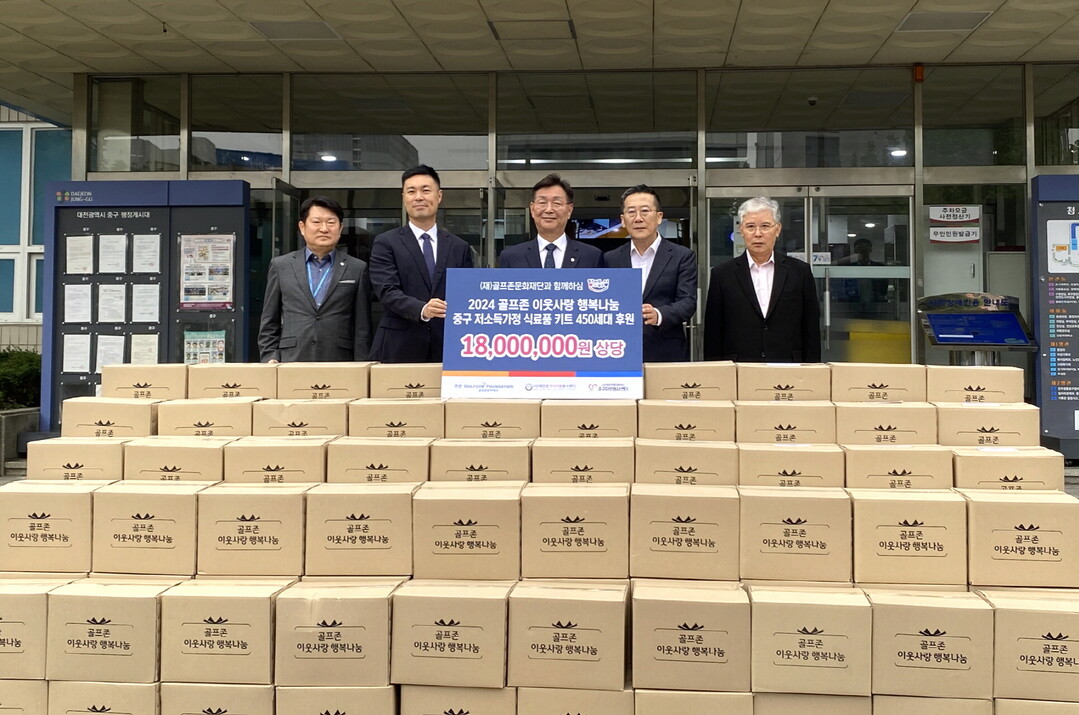 골프존문화재단은 지난 15일 대전광역시 중구청에서 취약계층에 식료품 키트를 지원하는 '골프존 이웃사랑 행복나눔' 후원식을 진행했다고 16일 밝혔다.
