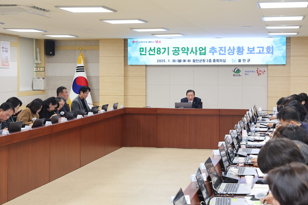경남 함안군은 20일 군청 중회의실에서 '민선 8기 공약사업 추진상황 보고회'를 개최했다.