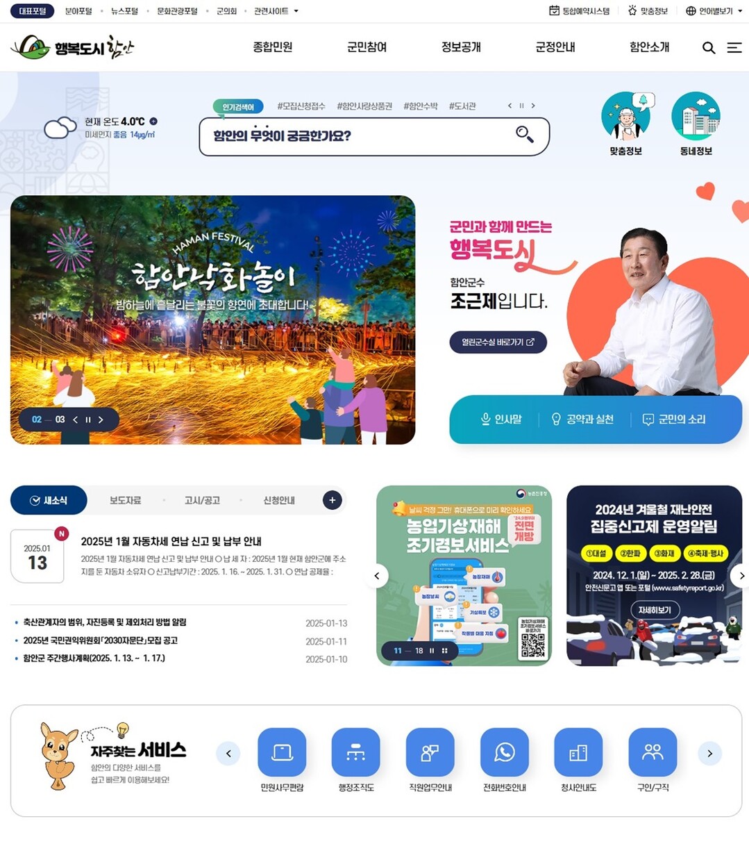 함안군, 대표 홈페이지 전면 개편 '이용자 편의성 향상'