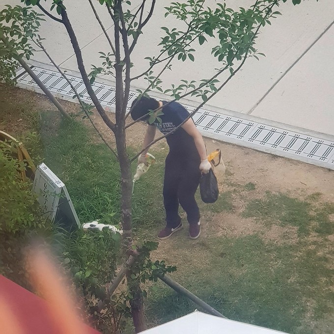 ▲ 정 씨는 고양이를 낚아채 바닥에 던지고 발로 밟았으며, 나무에 치는 등 폭행을 가해 죽인 다음, 정체불명의 액체를 뿌리고 갔다. [사진제공: 제보자 이 씨]