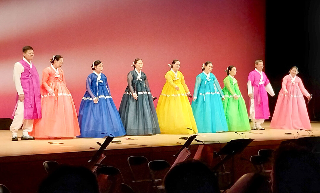 ▲ 일본 사쓰마센다이시 예능축제에서 창녕문화원 민요팀과 우포 생태춤 공연단이 전통문화 공연을 하고 있다. [창녕군 제공]