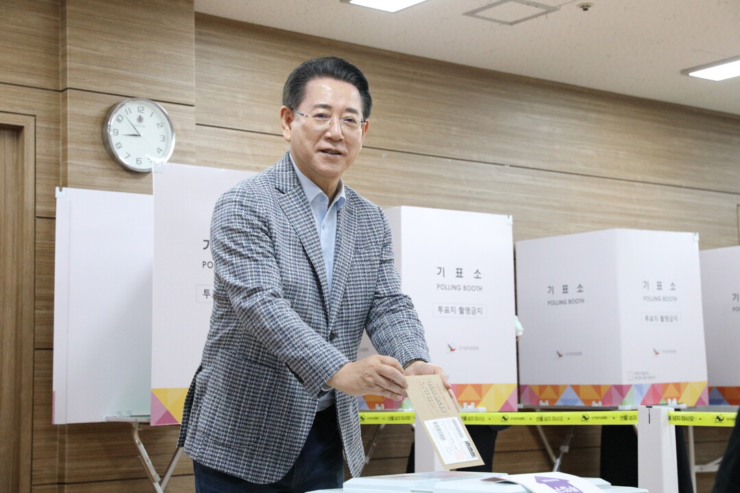 KPI뉴스 - [포토] 김영록 전남지사, 사전투표 첫날 '주권' 행사