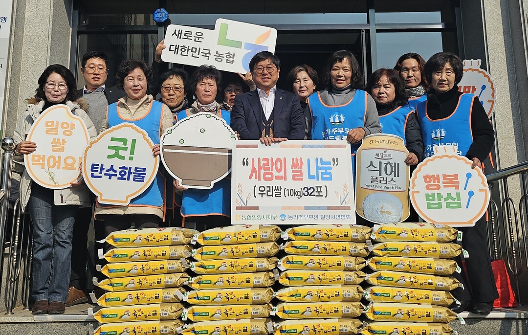농협밀양시지부(지부장 권태원)와 농가주부모임 밀양시연합회(회장 하춘선)는 21일 취약계층에 우리 쌀 320㎏(10㎏들이 32포)을 전달하는 '설맞이 사랑의 쌀 나눔행사'를 가졌다.