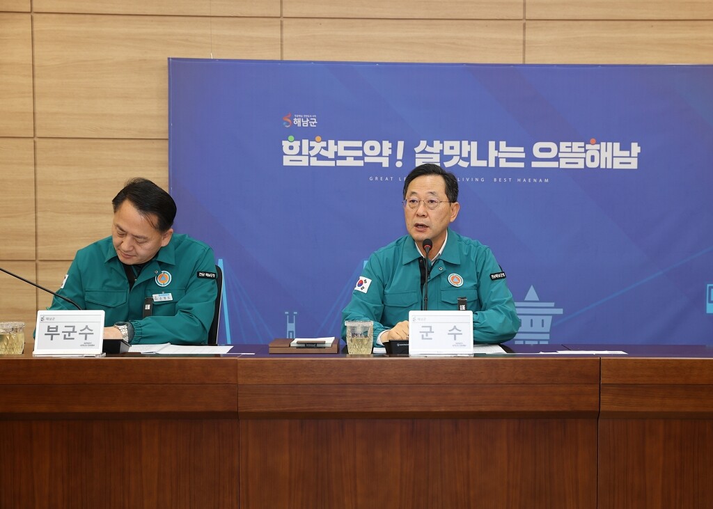 | ▲ 지난 29일 명현관 해남군수가 비상회의를 개최하고 있다. [해남 제공] |