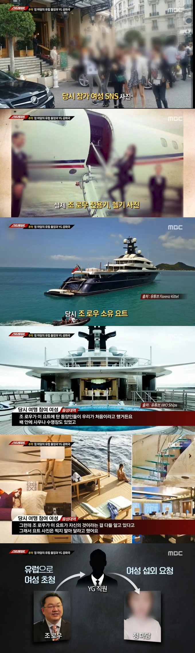 프랑스에 도착한 여성들은 조 로우의 전용기와 헬기를 타고 모로코 앞바다에 정박한 요트로 이동했다. 이 요트는 선체 길이만 90m가 넘는 2600억 원짜리 초호화 요트였다.
