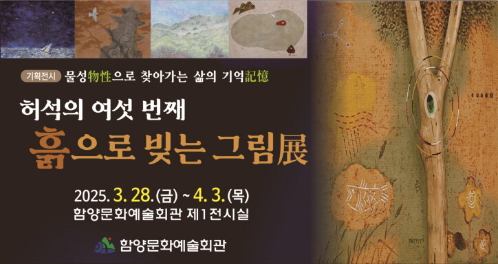 함양문화예술회관 기획전시의 일환으로 마련된 이번 전시에서 허석 작가는 흙 안료와 천연 광물 안료를 활용해 자연의 순수한 색채와 물성을 회화로 표현한다.