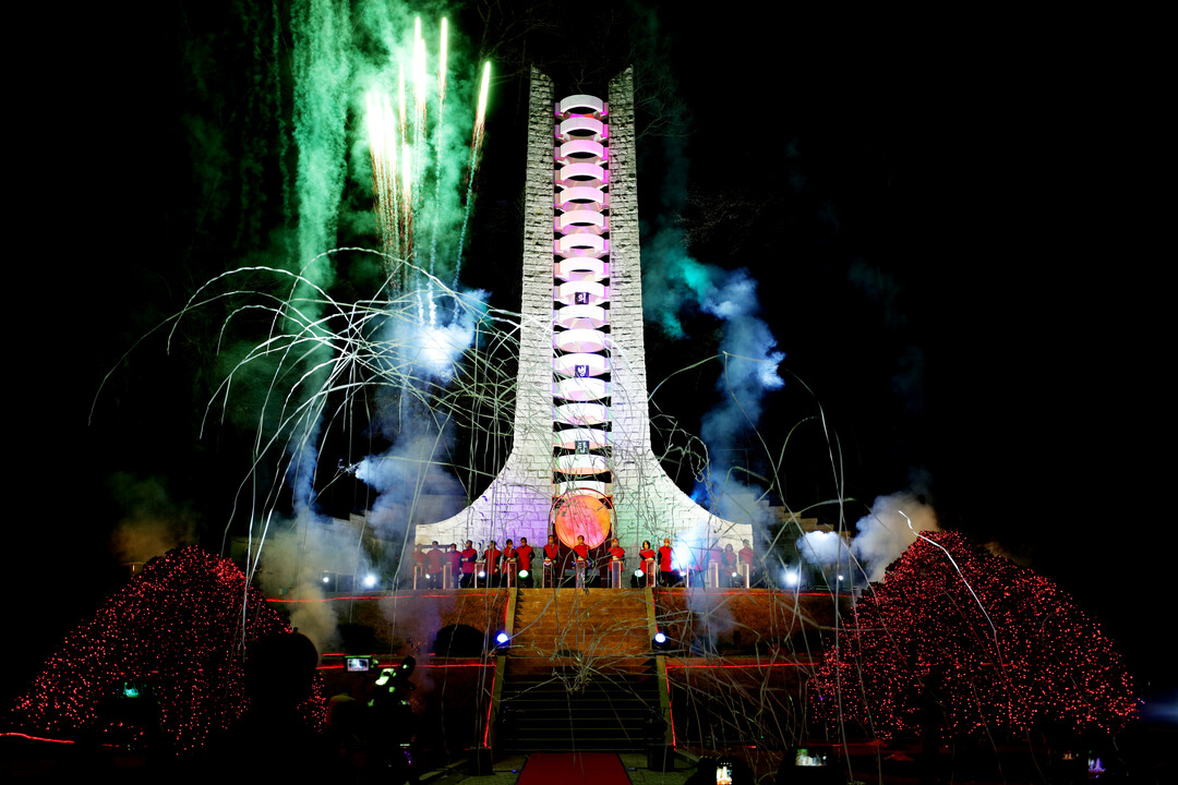 ▲ 지난 2022년 4월 3일 의병탑 건립 50주년 기념 점등식 행사 모습 [의령군 제공]