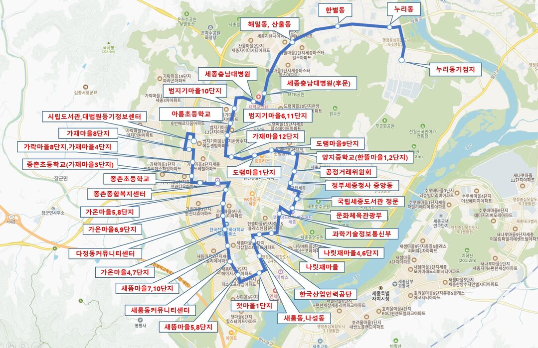 세종제일운수가 해당 노선을 운행하며 총 8대가 배차될 예정이다. 배차간격은 평균 24분으로, 하루에 편도 기준 88회 운행한다. 운행 시간은 오전 5시40분 부터 오후 10시 40분까지며 운행 거리는 약 22.75㎞, 소요 시간은 약 74분 정도로 전망된다.