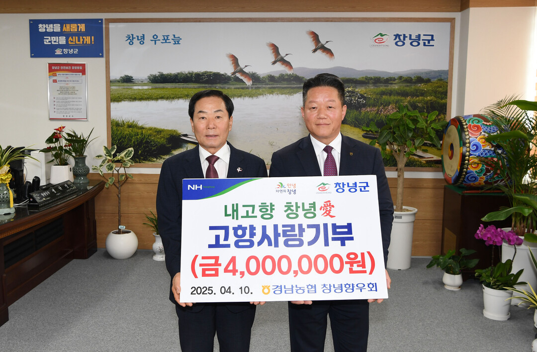 창녕군은 지난 10일 경남농협 창녕향우회(회장 신우경)에서 고향사랑기부금 400만원을 기탁했다고 밝혔다.
