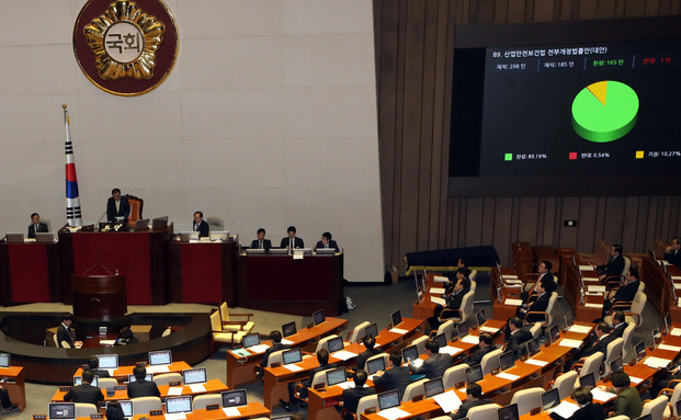 ▲ 고용노동부가 '산업안전보건법 전부개정법률'을 15일 공포했다. 사진은 지난해 12월27일 오후 여의도 국회에서 열린 제365회국회(임시회) 제1차 본회의에서 산업안전보건법 전부 개정 법률안이 가결되고 있는 모습. [뉴시스]