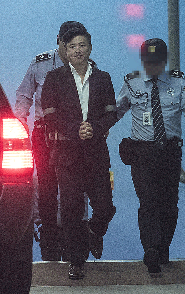 ▲ 고영태 전 더블루K 이사가 지난해 10월 5일 서울 서초구 서울고등법원에서 열린 항소심 2차 공판을 마친 뒤 구치소로 돌아가는 호송차에 탑승하고 있다. [정병혁 기자]
