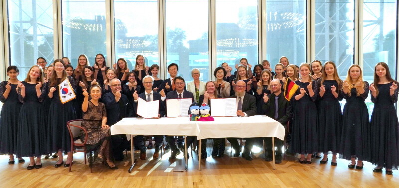 협약에 앞서 진주 출신 정나래 지휘자가 이끄는 '도르트문트 청소년합창단은 시청 로비에서 우리나라 대표 민요 '아리랑' '홀로 아리랑' 등을 불러 환호와 큰 박수를 받았다.
