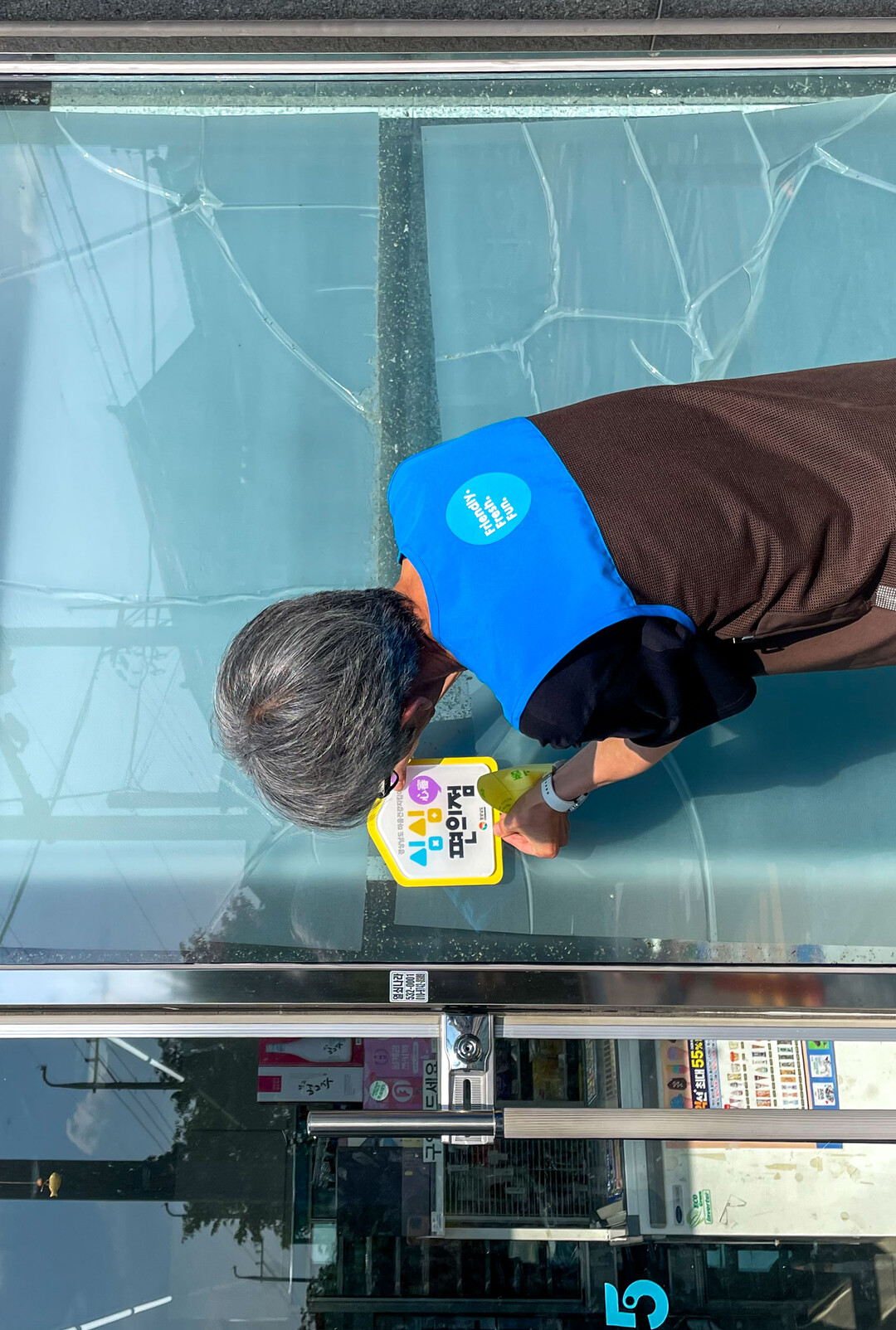 | ▲ 창녕군 공무원이 관내 편의점에 정신건강 자가검진 서비스 안내물을 부착하고 있다. [창녕군 제공] |
