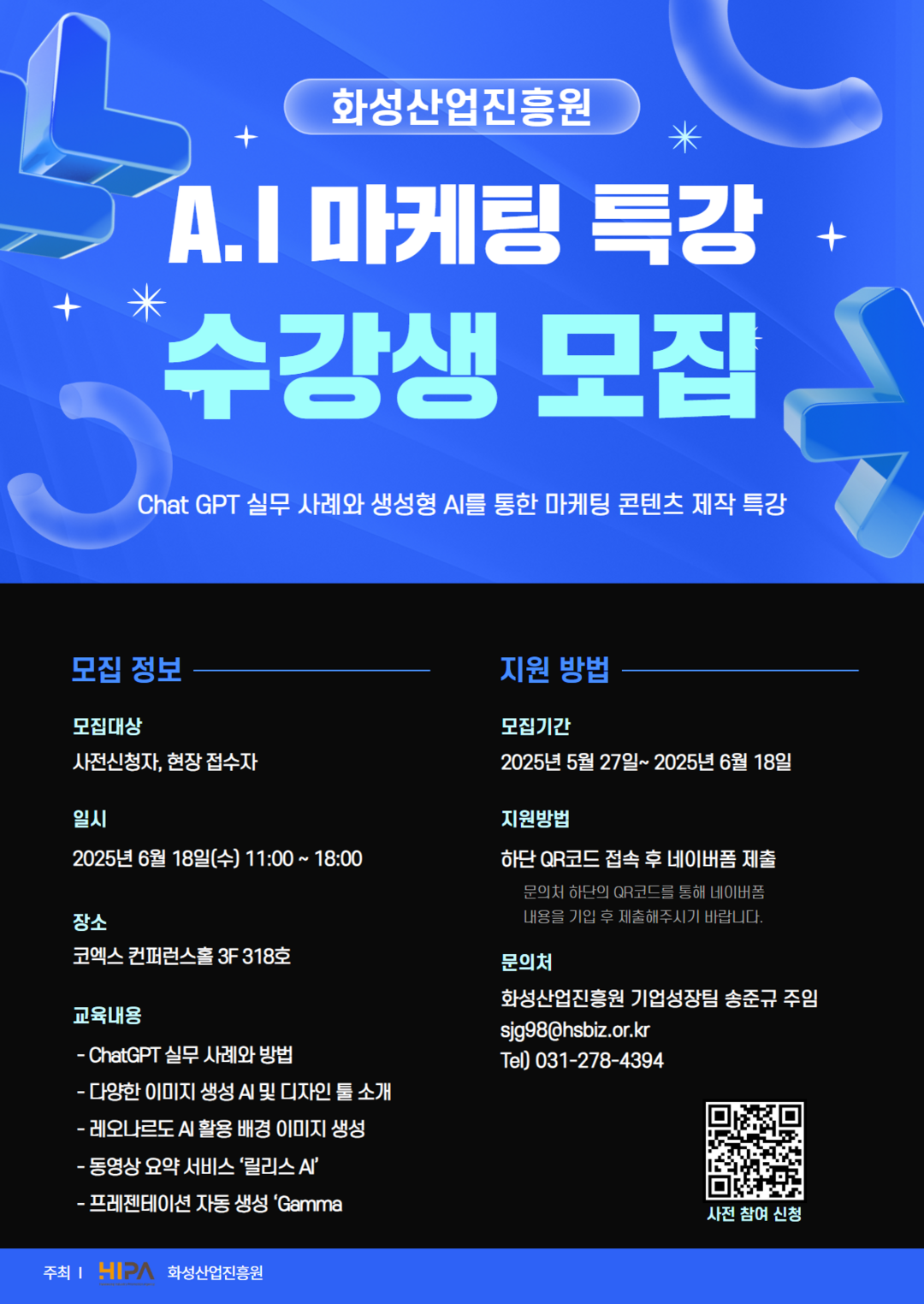 | ▲ MARS 2025에서 이아영 강사가 진행하는 AI 마케팅 특강 포스터. [화성시 제공] |