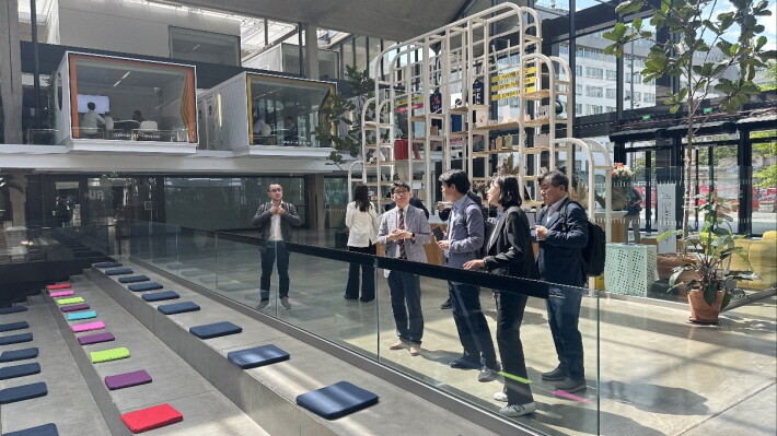 | ▲ 사천시 관계자들이 파리 스테이션 F에 방문해 사천에어쇼 홍보활동을 펼치고 있다. [사천시 제공] |