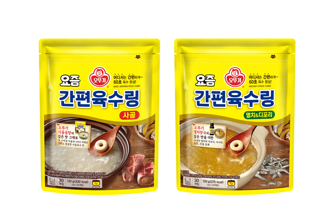 오뚜기는 대표 육수 제품인 '옛날 사골곰탕'과 '멸치장국'의 원료와 맛을 업그레이드한 '요즘간편육수링' 2종을 출시했다고 13일 밝혔다.