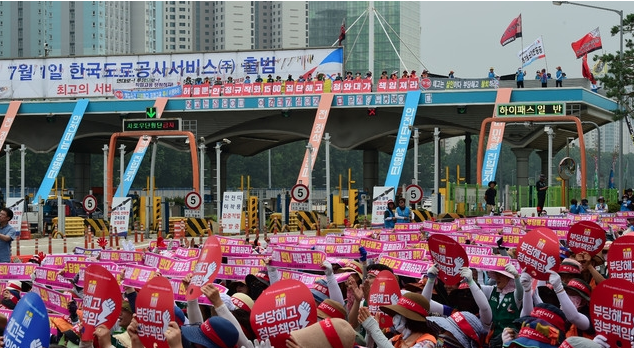 한편 지난달 30일부터 서울 TG 구조물 위로 올라간 30여 명의 노조원들의 고공농성 및 요금소 앞 텐트 농성은 닷새째 계속되고 있다.